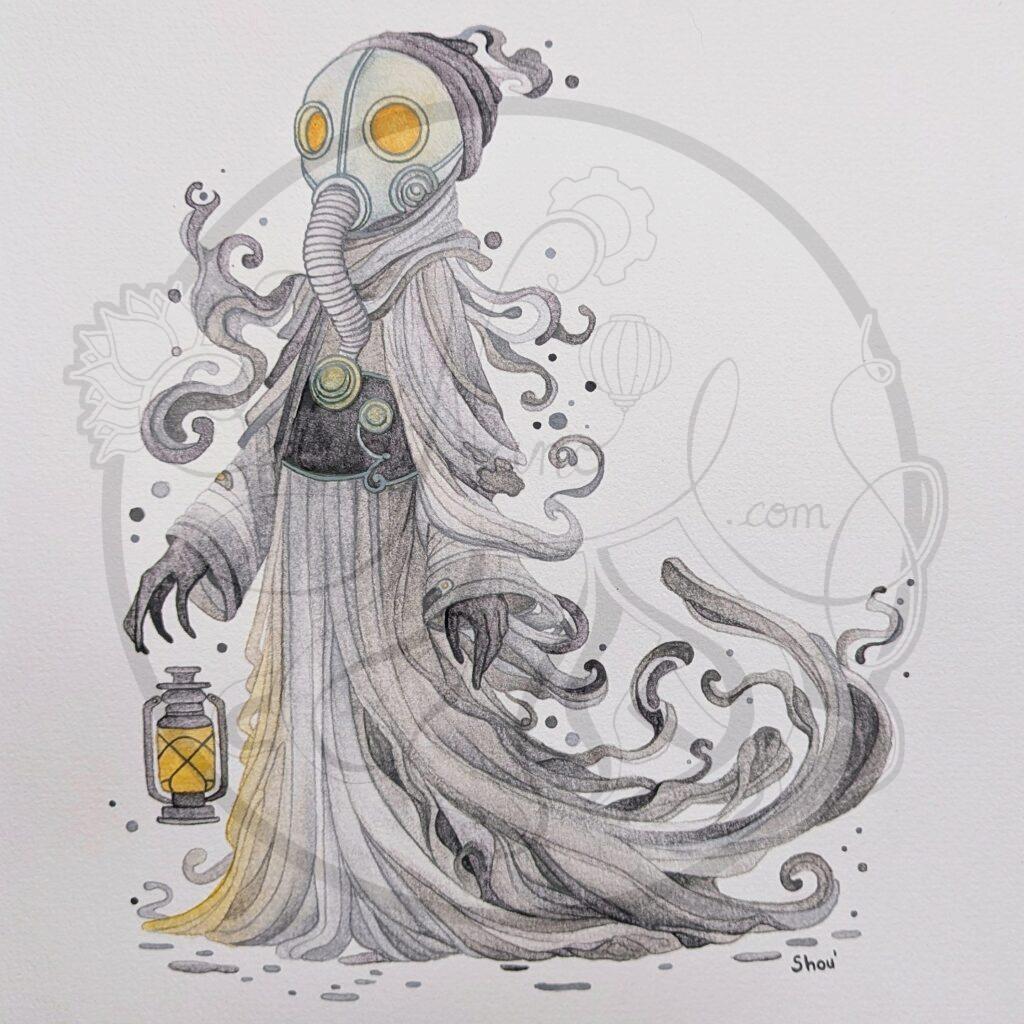 Dans le cadre de mon doctorat, je réalise une recherche-création. Autrement dit, une partie de mon travail de thèse est créatif et cette partie s’intitule « Le Carnval des Spectres ». Il s’agit de créer une cohorte de personnages qui, tous à leur façon, raconte le patrimoine industriel du Bassin Minier du Nord-Pas-de-Calais. Ce travail est actuellement essentiellement centré sur le patrimoine minier mais il a vocation à s’ouvrir au patrimoine métallurgique et textile à l’avenir.