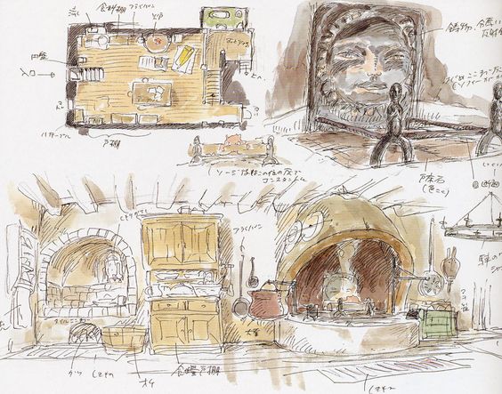 Je ne sais pas vous, mais cette vieille femme, tout de bleu vêtue, me rappelle le personnage de Mamie Sophie du film le Château Ambulant. D’ailleurs, dans ce long métrage de Ghibli, le feu (le personnage de Calcifer) occupe une place très importante pour la bonne marche du Château et la vie de ses occupants. Mais il n’est pas le seul : c’est Sophie qui répare les problèmes causés par le sorcier Hauru, qui nettoie son château laissé en piteux état et recueille même la Sorcière des Landes qui lui a pourtant lancé un bien mauvais sort de vieillesse, quand celle-ci retrouve sa véritable forme : celle, justement, d’une très vieille femme sénile et toute décrépite. (Depuis combien de temps est-ce que je vous promets de finir mon article sur ce film ? Je ne sais même plus moi-même.)