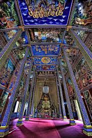 Il s’agit du magnifique intérieur d’un temple bouddhiste situé dans un petit village de pêcheurs de la banlieue de Phnom Penh au Cambodge. C’est un lieu incroyablement coloré et richement décoré qui a de quoi impressionner. Peint du sol au plafond, le temple est recouvert de scènes aux couleurs chatoyantes. L’endroit laisse rêveur.